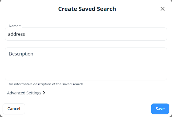 Provide a name and a description for your saved search and click on the SAVE button.