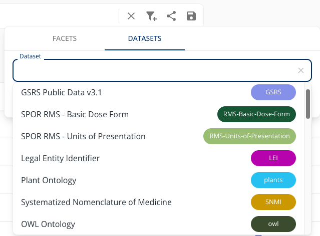 To restrict the search to a specific dataset, select DATASETS and choose a dataset from the dropdown menu.