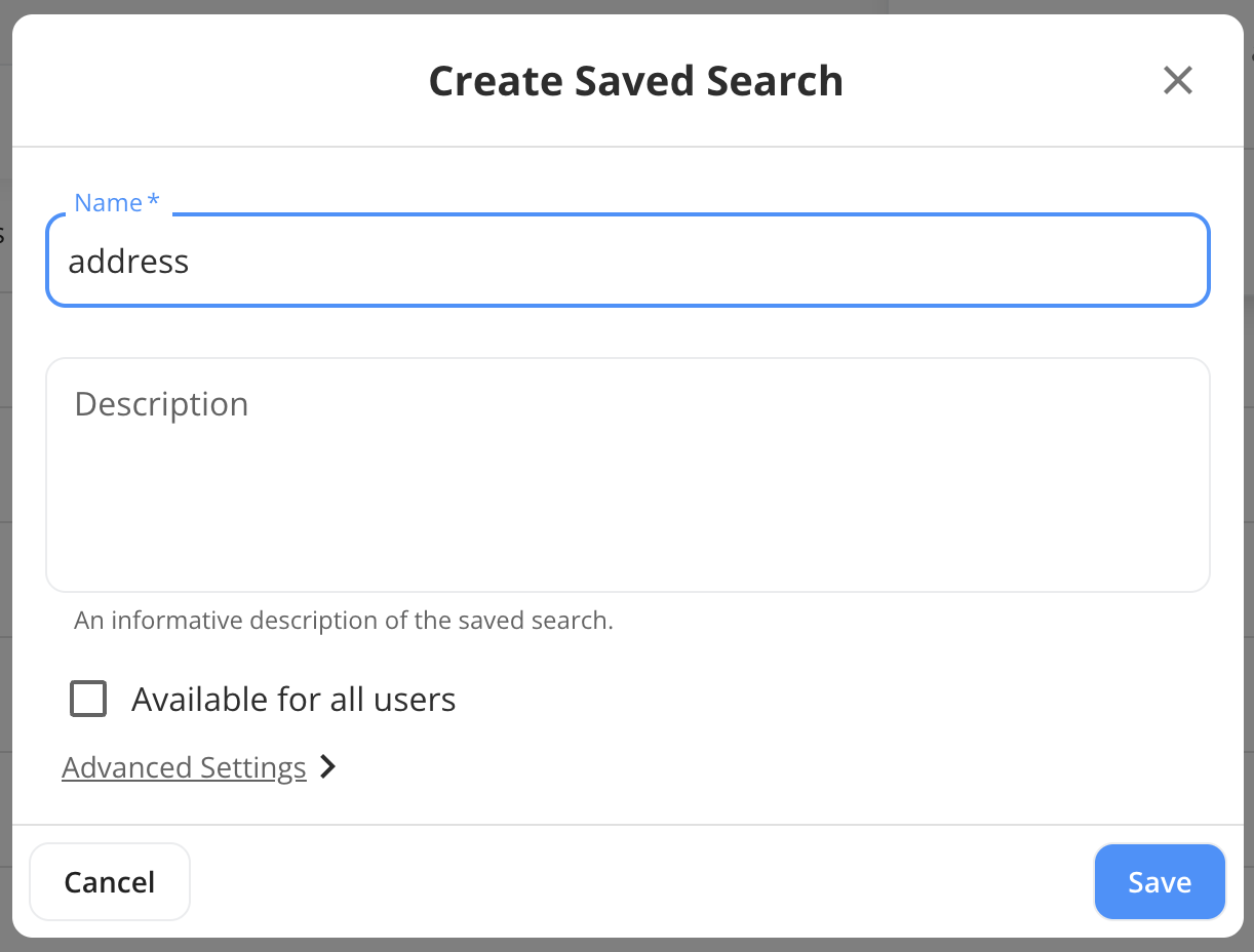 Provide a name and a description for your saved search and click on the SAVE button.